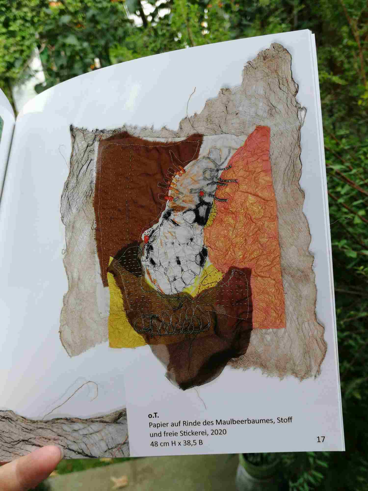 2020 war ein Jahr des Rückzugs. Meine kreativen Gruppen und Akademieangebote wurden abgesagt und ein gemeinsames Malen und Zeichnen war nicht mehr möglich. Für KünstlerInnen auch ein schwieriges Jahr, um über die Runden zu kommen. Doch auch diese Medaille hat zwei Seiten. In der Welt um mich herum wurde es ruhig und auch hier im Rosa Haus mit den Grünen Fensterläden gab es einen wundervollen Rückzugsort im Garten. Zeit, künstlerisch im Atelier mal wieder selber zu forschen und aus zu probieren, neue Materialverbindungen und Ausdrucksmöglichkeiten zu finden. Für mich war es vor allem ein ruhiges Arbeiten mit Nadel und Faden. Viele große und kleinere textile Bilder sind entstanden und ich habe das Thema "Buch" nochmals aufgegriffen. Es enstanden mehrere Leporellos "Die weiten Reisen des Windenschwärmers", "Die Eiermutter", "Interdependenzen" und andere Leporellos. Zeit auch für eine Dokumentation des Erreichten und hier ist er nun, der Katalog: 30 Seiten stark, Hochglanz und professionell und voller Verständnis und Sensibilität fotografiert von meiner geschätzen Fotografenkollegin Anna Silvia Bins. Speziell zu den Leporellos hat meine Kunstvermittlerin Sabine Klement einen Text geschrieben. TEXTILE VERWURZELUNGEN.