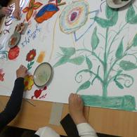 In Erftstadt biete ich seit einiger Zeit der MALKREIS für Frauen an, zu dem sich jede Woche bis zu einem Dutzend Frauen aus ganz verschiedenen Ländern, aus Ski Lanka, Ukraine, Iran, Syrien, Armenien, Bangladesh treffen. Alle leben in einer Übergangssituation, teilweise mit Kindern oder ihren Männern, teilweise auch sind sie ganz allein gekommen. Frauen stellen sich immer hinten an: Hinter die Männer und die Kinder. Doch sie tragen den häuslichen Zusammenhalt der Familie. Hier ist für sie Raum für Ruhe und Begegnung. Nichts muß, aber es kann. Diese Woche haben wir ein gemeinsames Bild gemalt. Sprache ist manchmal schwierig, weil es keine gemeinsame Sprache gibt. Und es gibt immer wieder Bemühen um Austausch und Verständigung und dann werden auch gemeinsame Worte gefunden. Ich freue mich, daß es von der Politik in Erftstadt gewollt ist, in Projekte für Integration zu investieren und so auch dieses Angebot stattfinden kann.