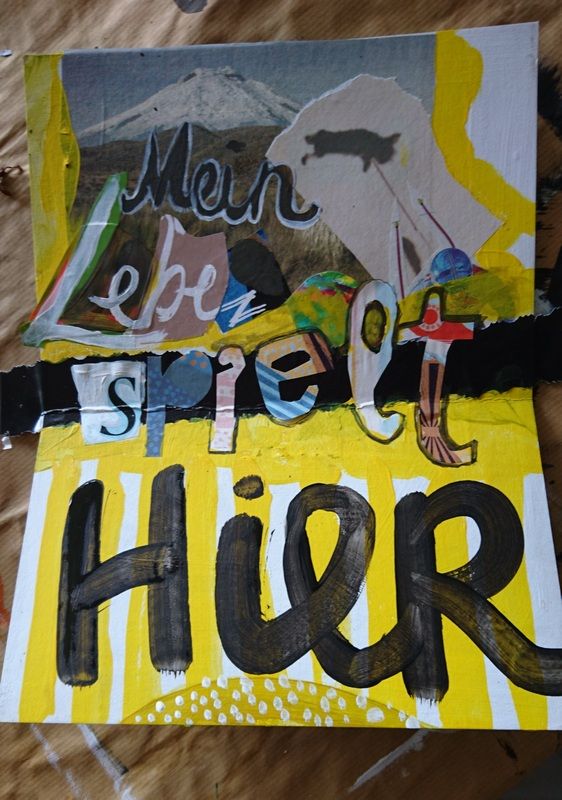 In unserer Runde am Tisch haben wir erst einmal geschaut, welche Worte, Zitate oder starke Sätze sind gerade jetzt wichtig für uns? Auf dem Tisch eine Menge Vorschläge zur Auswahl und einige hatten sich auch Zuhause schon Gedanken gemacht.. Manche Sätze sehr persönlich, andere allgemeiner. Wichtig war in jedem Fall, daß jede Teilnehmerin einen Satz findet, der IN DIESEM MOMENT stimmig war und der sie GANZ PERSÖNLICH ansprach. Der Fokus in der Gestaltung konnte auf die Bildmessage gelegt werden oder auch auf den Ausdruck mit Schrift.