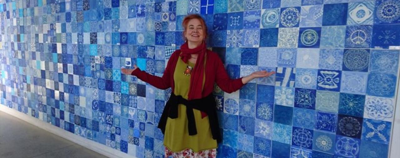 Eindrucksvoll, alles Blau! Eintauchen in die kleinen blauen Quadrate. Ein Sozialkunstprojekt für Menschen mit und ohne Fluchterfahrung aus 56 ! Ländern der Erde. Aktuell und noch bis zum 17. November 2017 zu sehen im